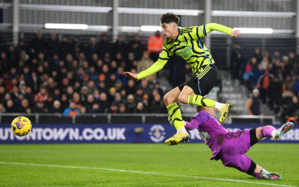 第60分钟,禁区内热苏斯的挑传,哈弗茨拍马赶到将球送进球门,阿森纳3-3卢顿。